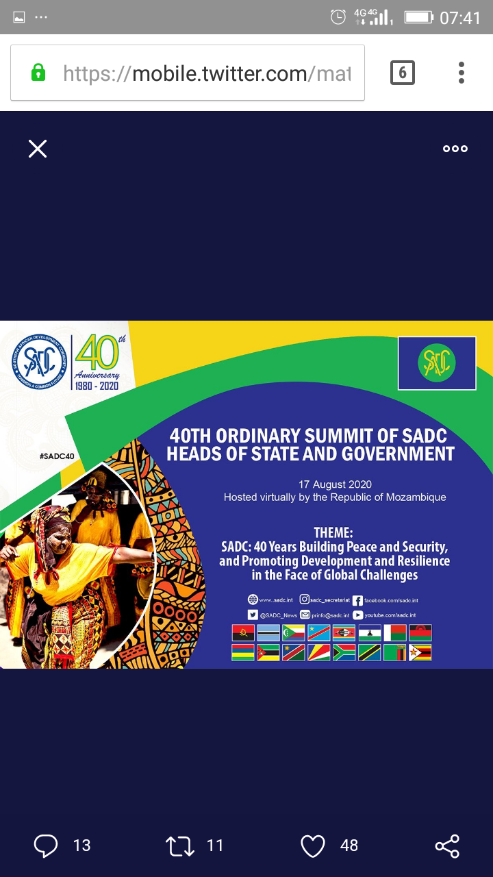 Mozambique is scheduled to virtually host the Summit under the theme '40 years Building Peace and Security, and Promoting Development and Resilience in the face of Global Challenges.'