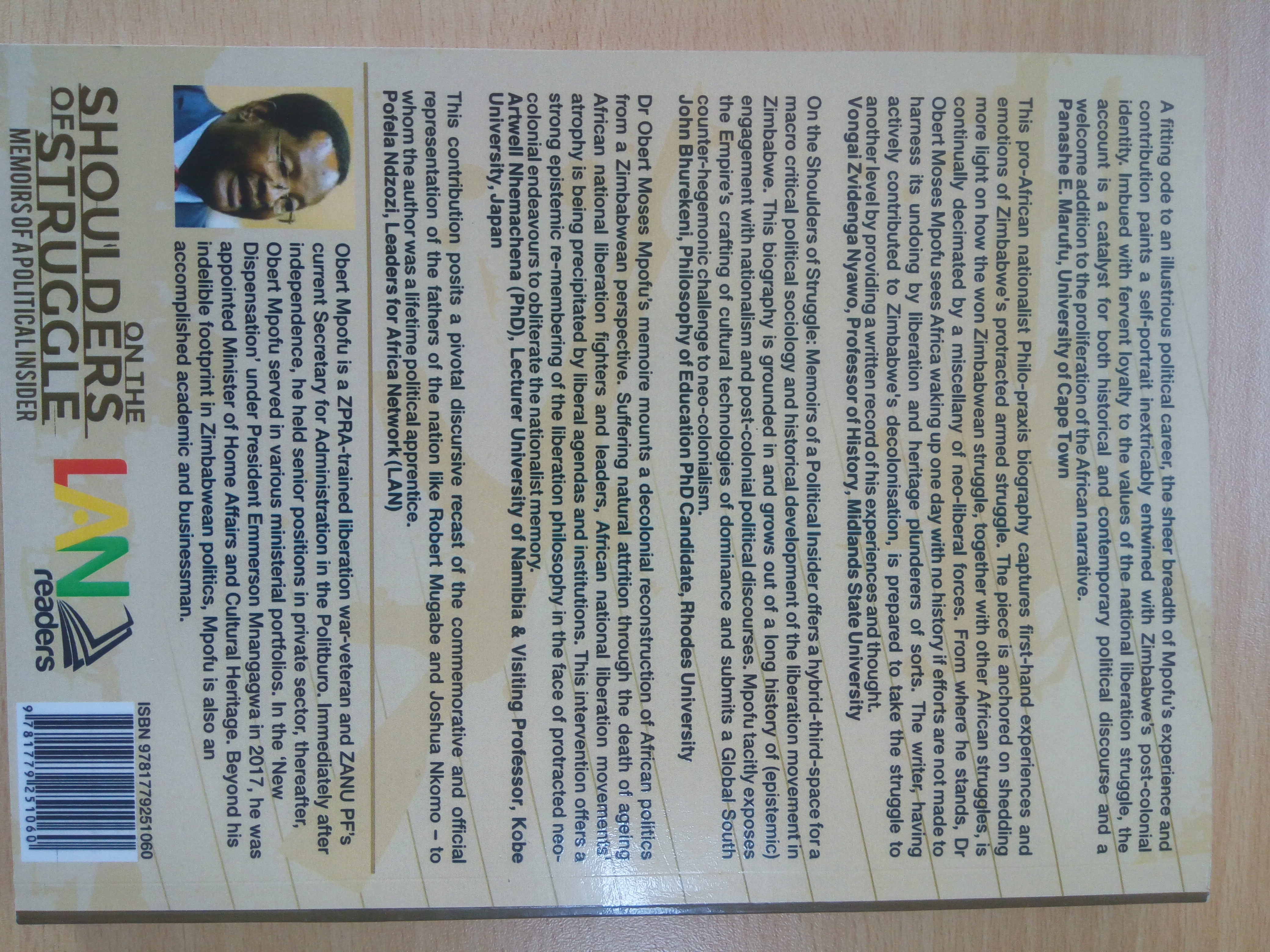He added that "Cde Mpofu's writing imposes a relink to that long lost ontological claim to the African self-liberation. As such, this publication unequivocally asserts that in as much as we are pursuing re-engagement in the realm of the political we also need to solicit the same at the level of the epistemological. The counterbalance to re-engagement at the paradigm if both the political and epistemological reinforces state-craft architecture which is deeply embodied in terms of long-lasting virtues of a people and their passionate self-defining path to total liberation."