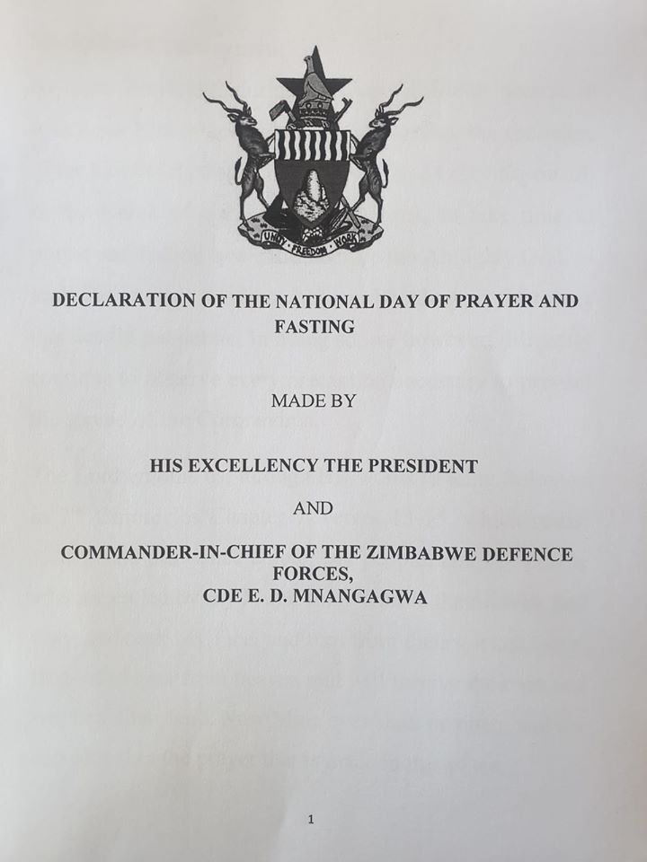 President declares national day of Prayer and Fasting