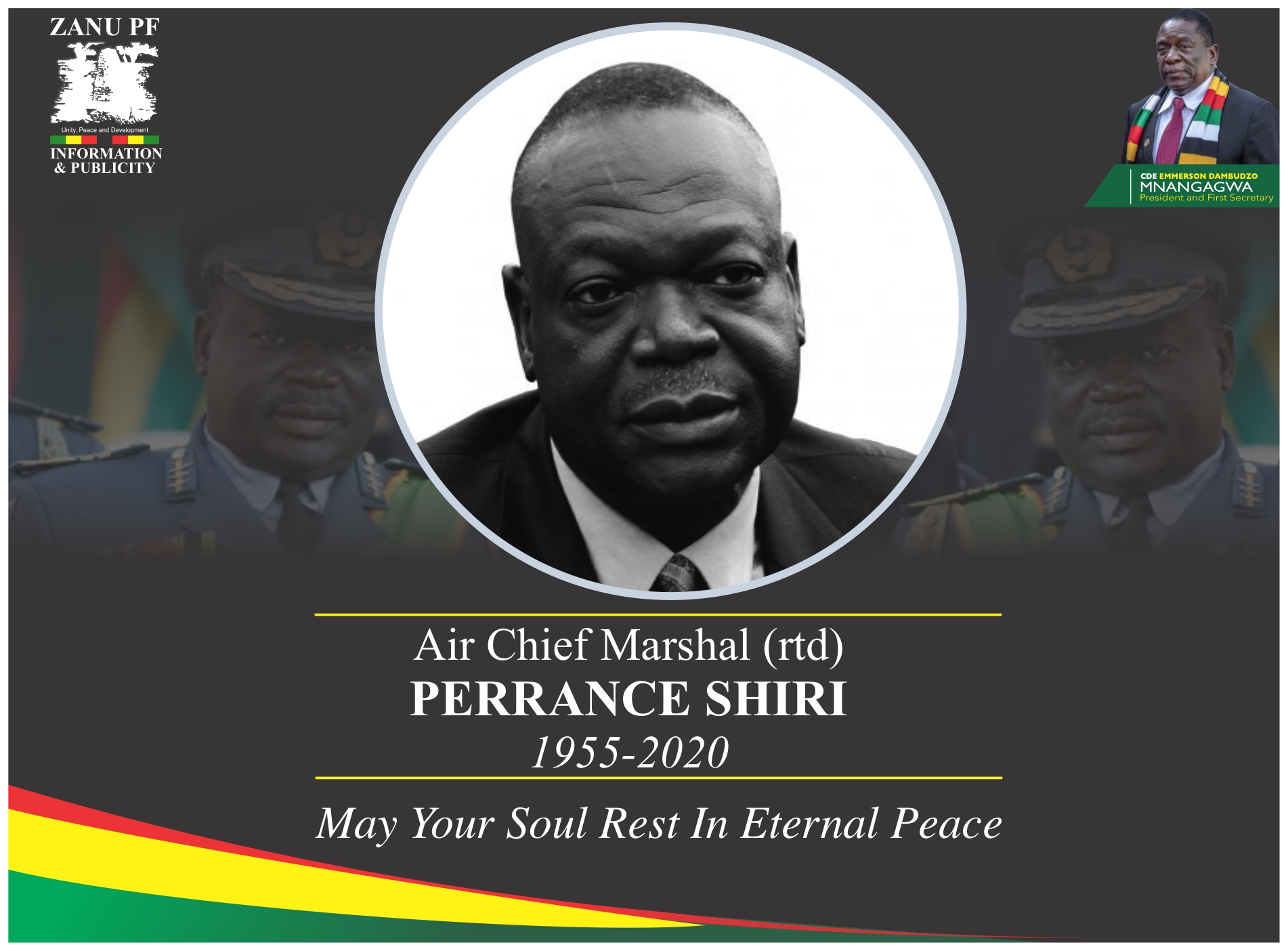 ZANU PF First Secretary and President Cde Emmerson Mnangagwa has joined the nation in mourning the passing on of the late Air Chief Marshal (Rtd) and Minister of Lands, Agriculture, Water and Rural Resettlement, Cde Perrance Shiri.