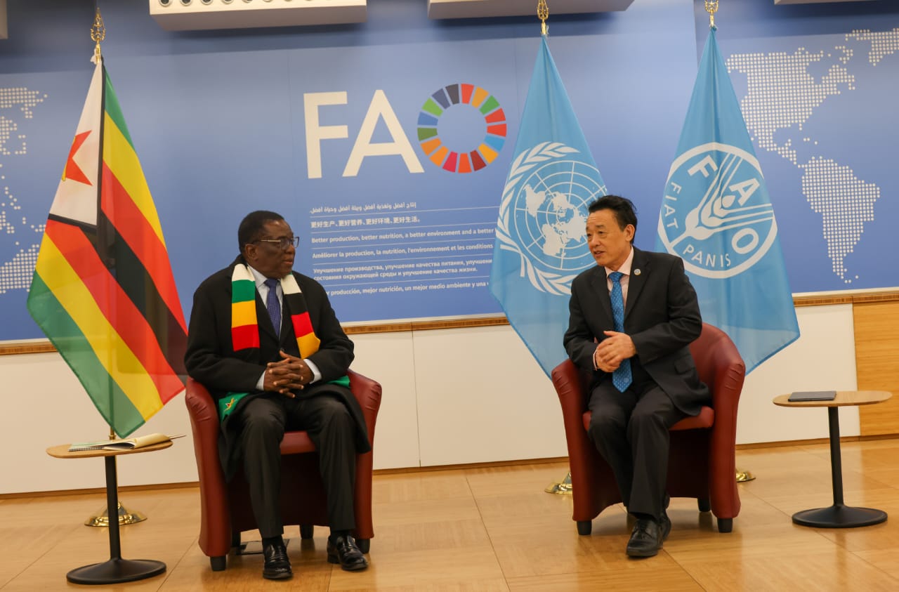 Today His Excellency President Emmerson Mnangagwa @edmnangagwa met the FAO Director-General, QU Dongyu, at FAO headquarters in Rome. His Excellency is in Italy for the 1st Italy- Africa Summit.