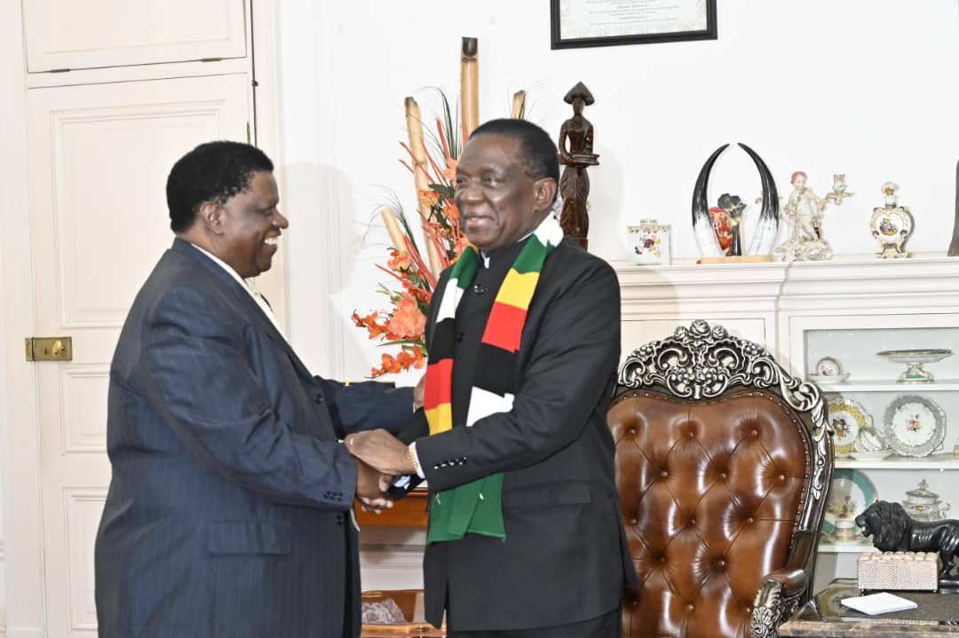 H.E. President E.D Mnangagwa has met with SWAPO's Central Committee member, Cde Utoni Daniel Nujoma. He is also the son of Namibia's founding President, Cde Sam Nujoma and currently serves as the Minister of Labour, Industrial Relations and Employment Creation in Namibia.