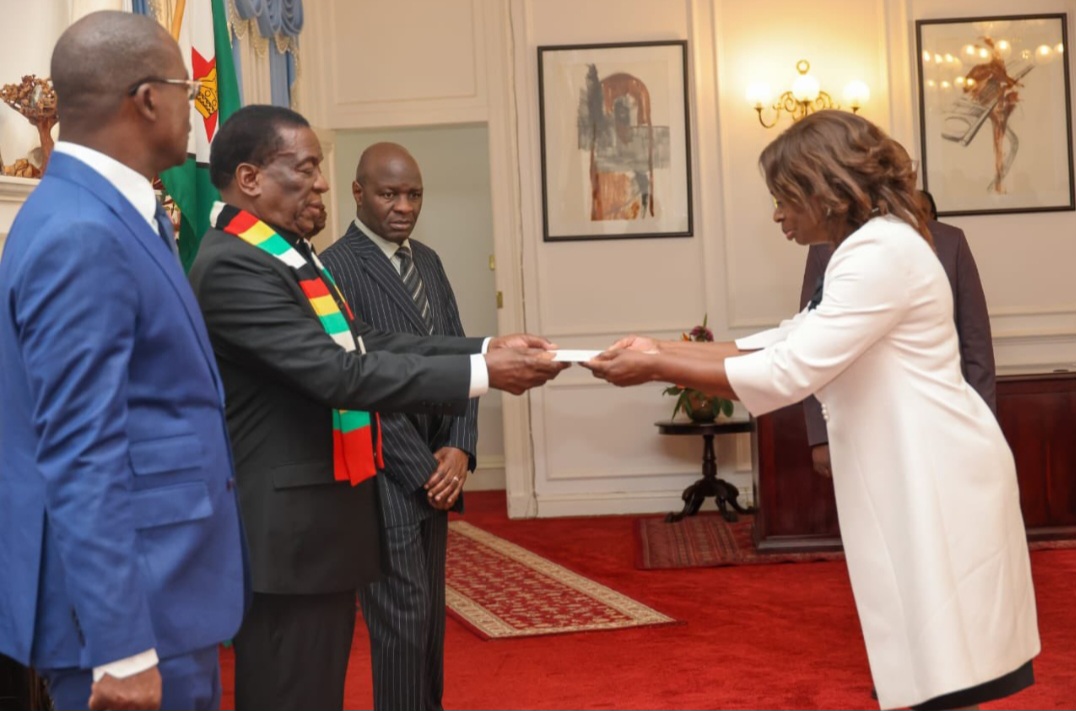 ZANU PF First Secretary and President, His Excellency Dr Emmerson Dambudzo Mnangagwa today received credentials from Her Excellency Joan Thomas Edwards, the new Jamaican Ambassador to Zimbabwe.