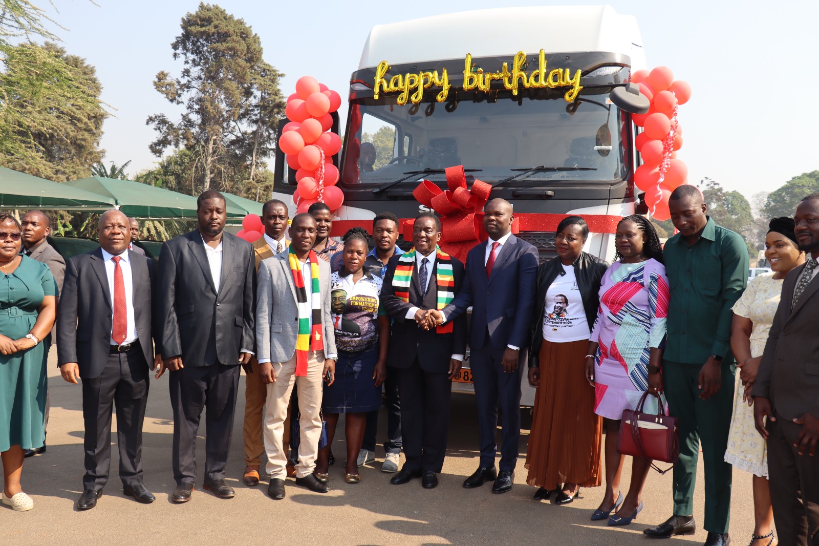 His Excellency, President Emmerson Dambudzo Mnangagwa this morning received the Shacman truck birthday gift from Minister Tino Machakaire at State House.