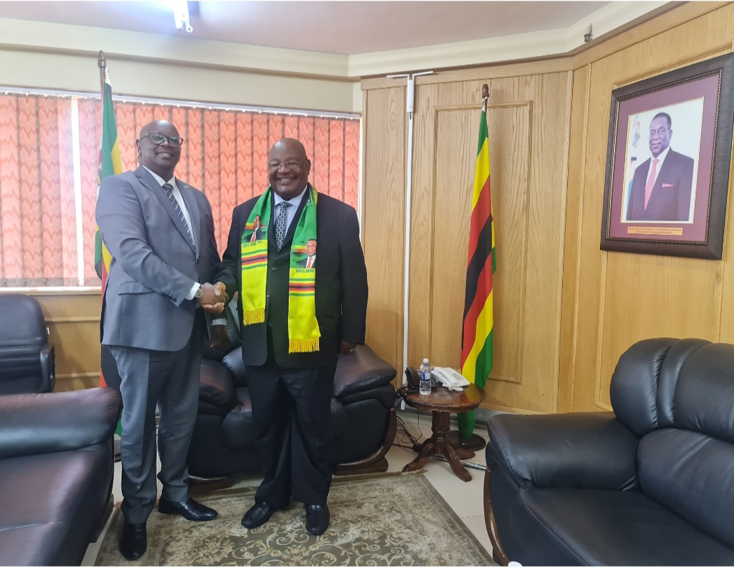 Rwandan Ambassador to Zimbabwe His Excellency James Musoni has paid a courtesy call on ZANU PF Secretary General Cde Obert Mpofu at the Party headquarters in Harare.